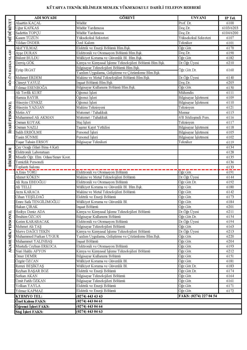 Dahili Telefon Rehberi