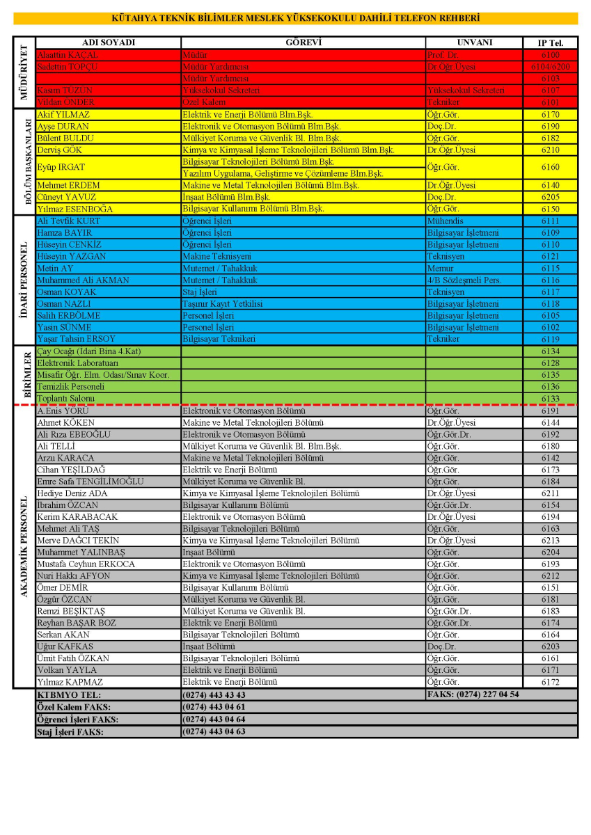 Dahili Telefon Rehberi